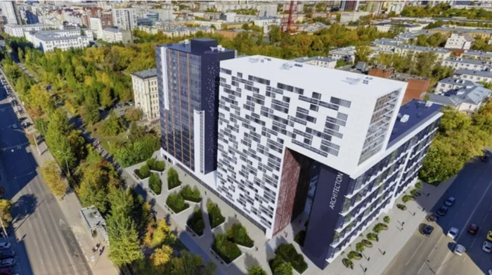 ЖК включает в себя 4 секции высотой 7 -17 этажей с коммерческими площадями на первых этажах, а также подземный паркинг.