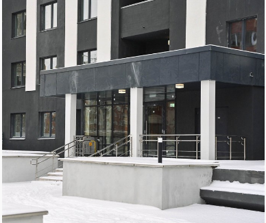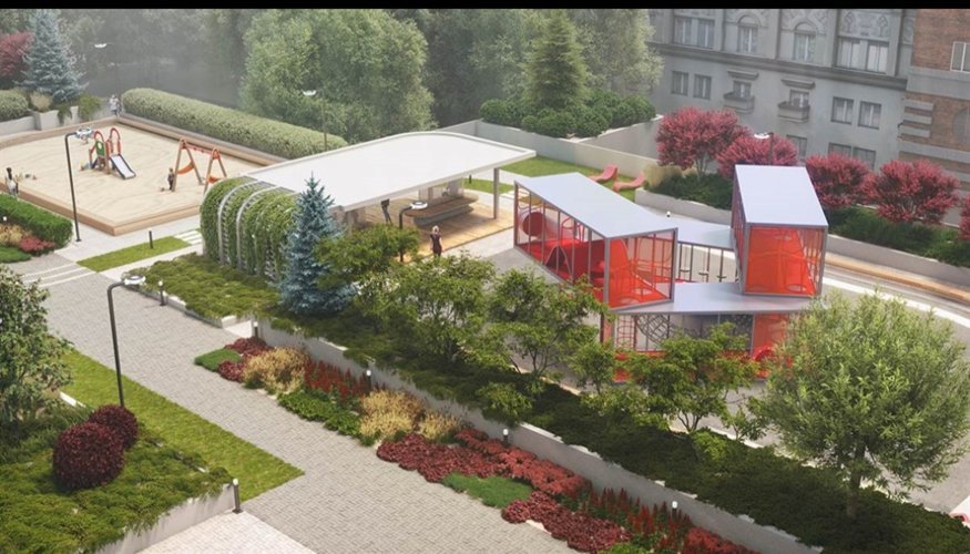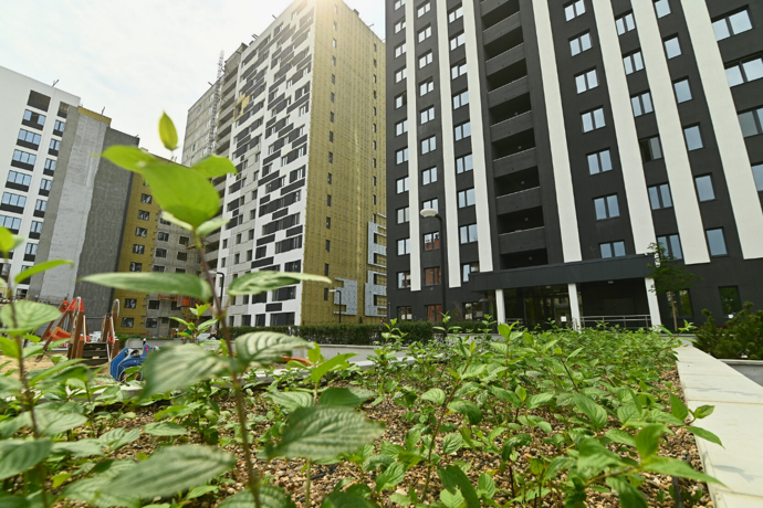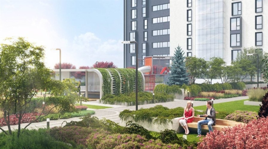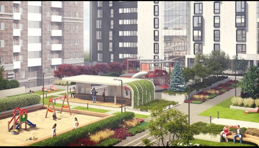 Проведено озеленение участка газонами. Для автовладельцев предусмотрены места на открытых стоянках.