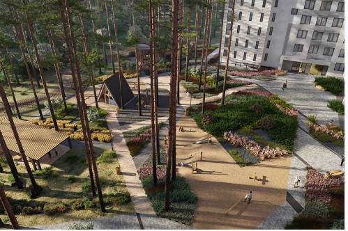 Дворы подарят жителям ценную близость к природе: lounge-пространства в формате A-Frame и спортивные площадки для всех жителей
