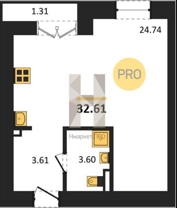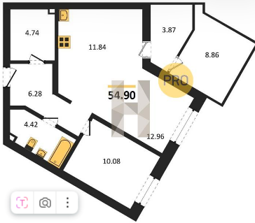 Площадь от 30.54 м2