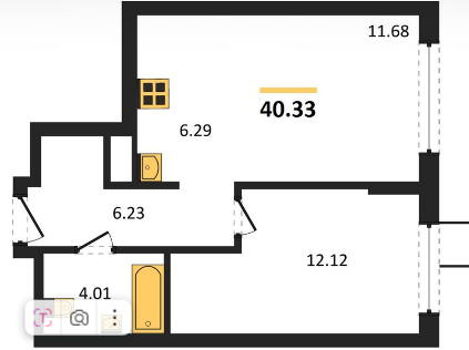 Площадь от 33.29 м2