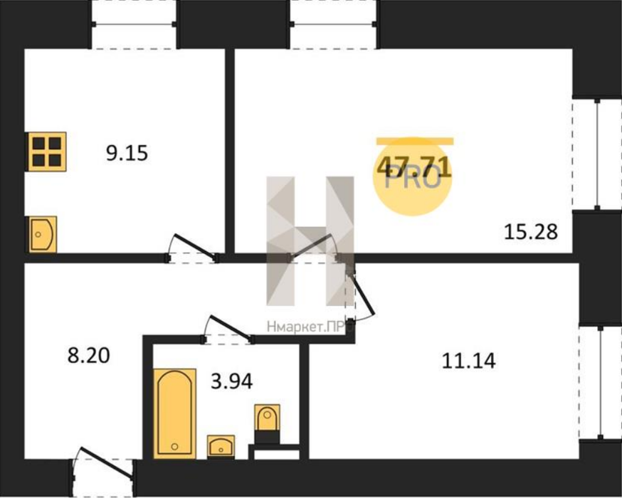 Площадь от 47.71 м2