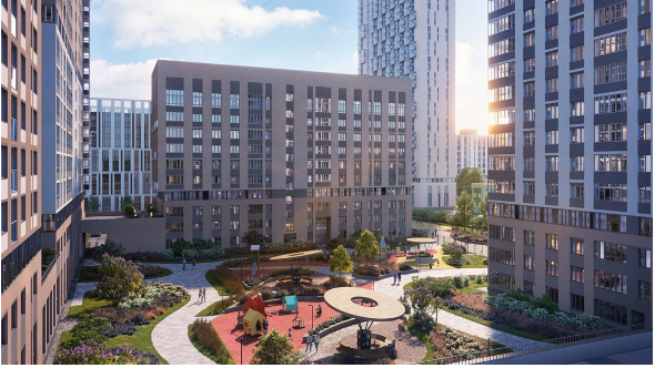 Благодаря переменной этажности во дворе всегда много солнечного света и нет эффекта колодца.